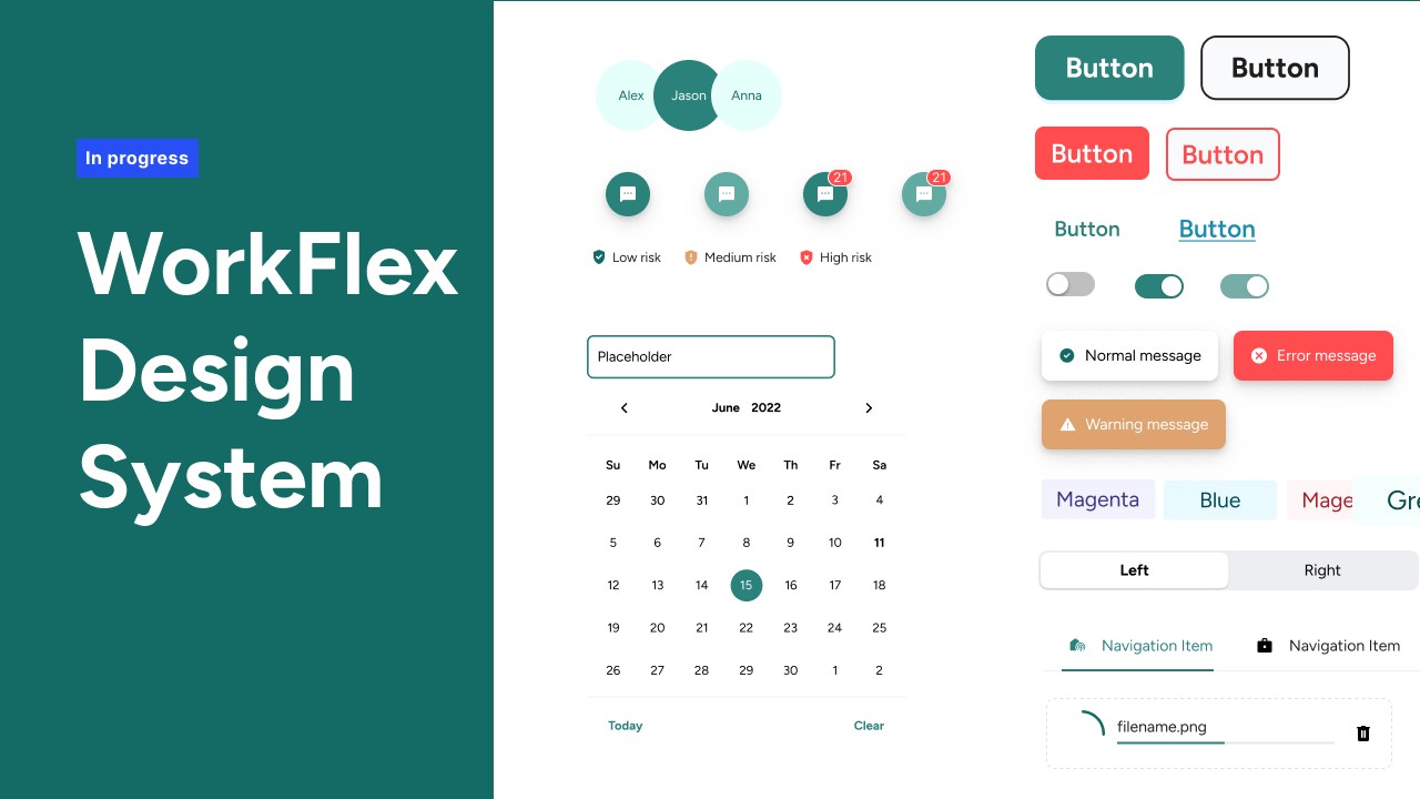 In the last year, I led the WorkFlex Design System, evolving it from no library with less than 5% alignment with code components to a state-of-the-art system. 100% design/code-aligned, design token-based, WCAG 2.1 AAA level accessible.