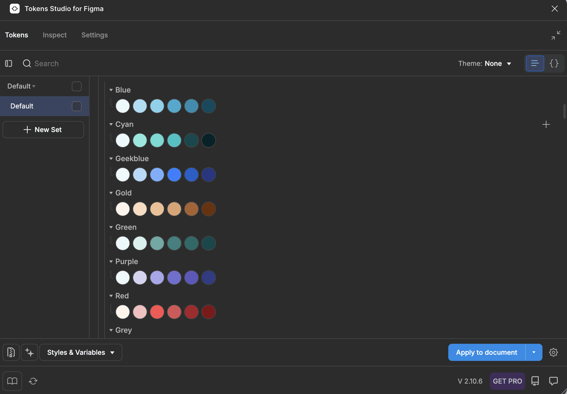 Semantic and functional tokens exported as JSON and integrated into Angular theming
